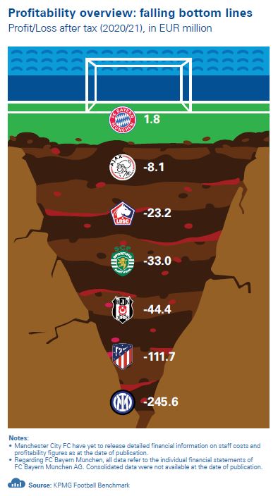 The second football season impacted by the coronavirus pandemic is showing further disruption in the financial performances of the champions of Europe’s eight prominent leagues, according to the 6th edition of KPMG Football Benchmark’s “The European Champions Report”. With total revenues of most clubs still below their pre-pandemic levels in an industry characterized by a predominantly rigid cost structure, most champions recorded massive losses for the financial year which ended in May/June 2021. While there were notable exceptions, the most common trend seen was that operating revenues – hit hard by a nearly complete loss of matchday income, but mitigated by stable or increasing broadcasting and commercial revenues, at least when compared with the previous football season – could not make up for generally high staff costs and decreasing player trading income. Importantly, those revenue growth figures were mostly related to broadcasting income impacted by the delayed payments for matches postponed in the previous, 2019/20 season.