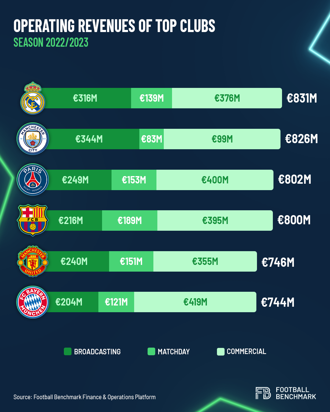 Just a few years back, a highly exclusive group of clubs had their sights set on this lofty ambition, only to find their plans abruptly derailed by the onset of the Covid pandemic. Yet, with football's engine roaring back to life at full throttle, we find ourselves witnessing a resurgence. Four clubs now proudly boast operating revenues surpassing the €800 million mark. It's crucial to note that these revenues, net of player trading, typically stem from three primary sources: stadium, TV rights deals, and the commercial sector. But what lies ahead? To shed light on this intriguing narrative, Timothy Bridge, partner at Deloitte's Sports Business Group, explains:
